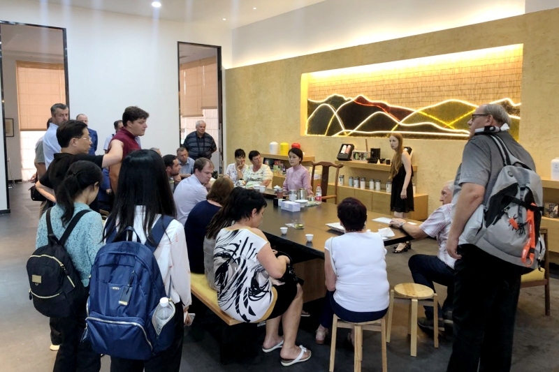 随后,访问团来到茶文化展示区,参观民国风茶馆、宋代抹茶宴展示室等区域,集团茶艺师为客人敬奉了“天香”牌九曲红梅。来宾在闲适典雅的氛围中品饮香茗,感受中华茶文化的深厚底蕴。